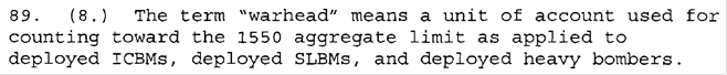 Bestätigt wird dies durch den START II-Treaty, dessen Protocol, Part I, § 89, den Begriff des warhead wie folgt definiert: