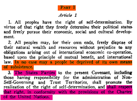 Der genannte Pakt (ICESCR) enthält den nachstehenden Artikel 1: