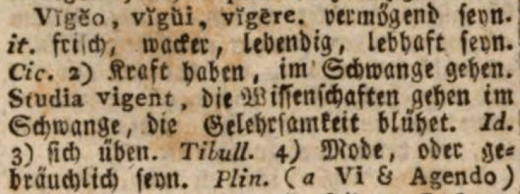 Viget – in der obigen Übersetzung mit besteht transferiert – stammt von vigeo 2, und bedeutuet so viel wie: