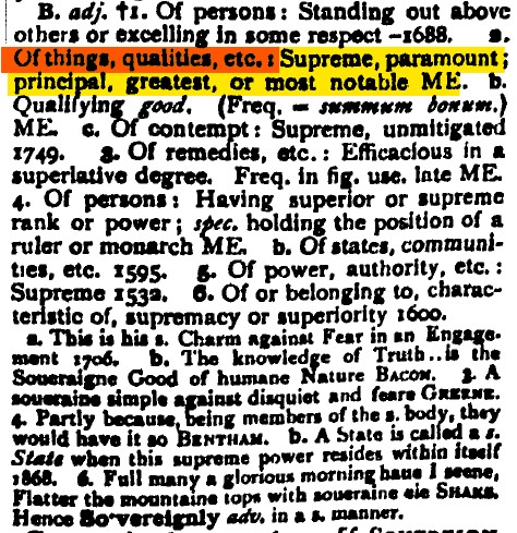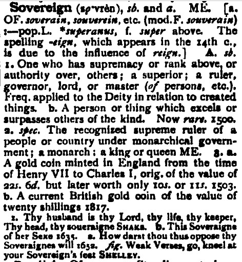 Die Bedeutung des Adjektivs sovereign ist nach SOED (1947) die folgende: