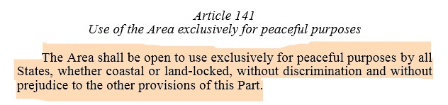 Dieser Grundsatz des Verlustes der eigenen Souveränität bei völkerrechtswidriger Gewaltanwendung gegen andere, schlägt sich auch in Artikel 141 UNCLOS nieder, der da lautet: